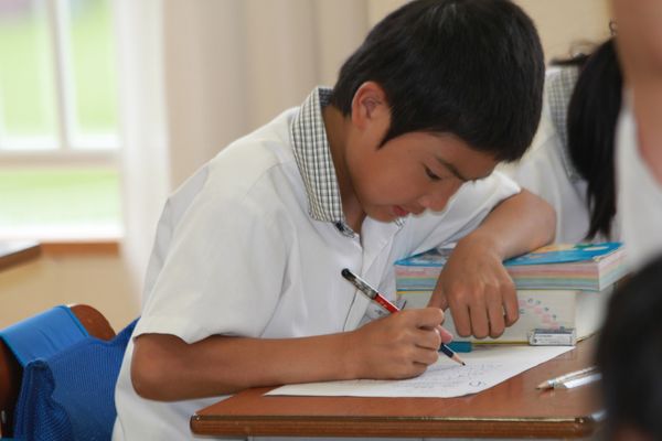 英宏小の3・4年生は11月に小学生の国語検定として最高水準の「Z会国語力基礎検定」を全員受検します。同検定は小学3年生から6年生が同じ問題を解き、その正答率によって合格級が判定されます。真剣なまなざしで授業に臨む4年生たちです。