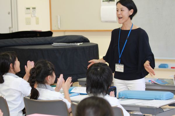 おなじく7時間目の音楽の授業を受ける3年生たちの様子。11月の文化発表会では日頃の成果を発表するステージ発表もあります。