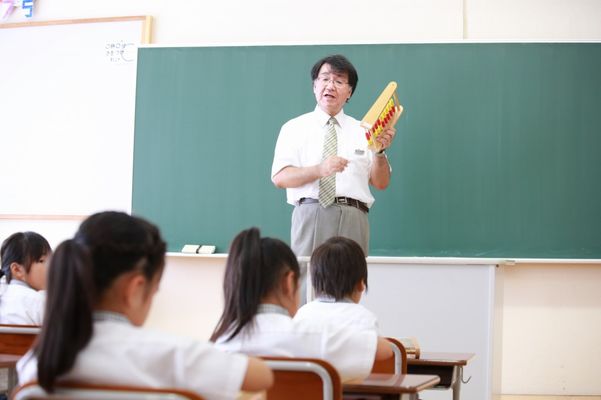 授業見学では,2年生の社会科遊びや1年生の百玉そろばんin Englishでのびやかに学ぶ子どもたちの様子を参観していただきました。