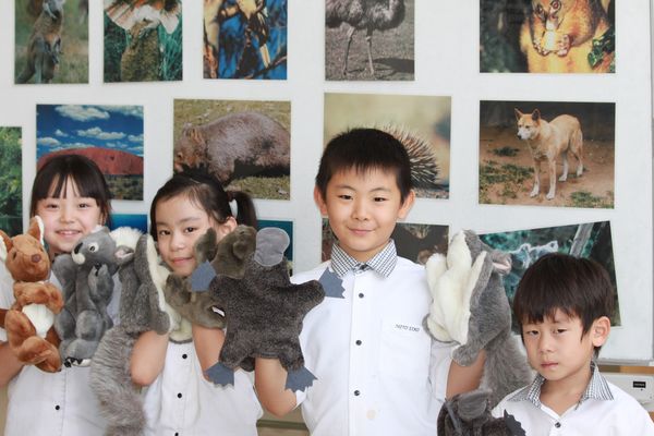 児童ホールにはオーストラリアの自然・文化を紹介するコーナーが設置されました。また、各教室にも図工の時間に製作したオーストラリアの生き物の絵などが展示されています。