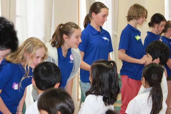 オーストラリアの小学校で日本語を勉強している子どもたち。日本語で立派な挨拶をしました。