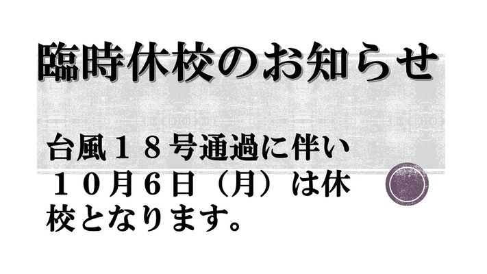 台風18号の通過に伴い,10月6日(月)は休校となります。