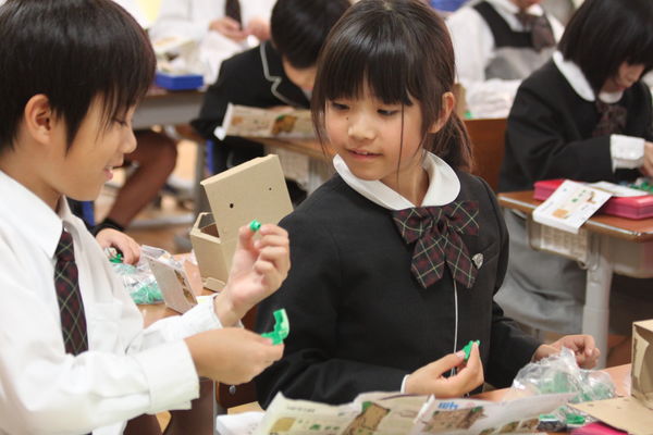 今日のアフタースクールは「BOXロボット」の製作。ロボット製作キットを一人一人が組み立てていきます。