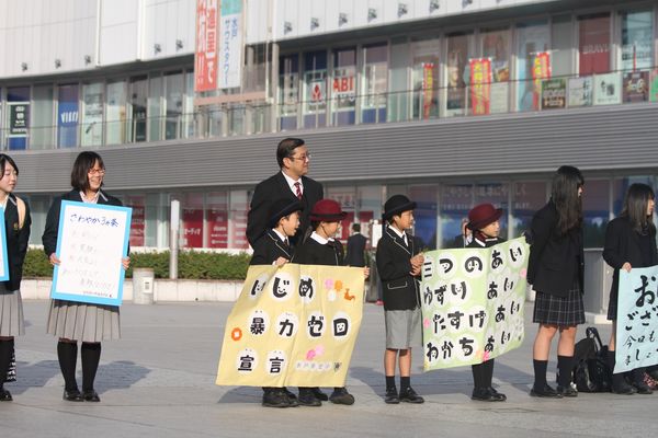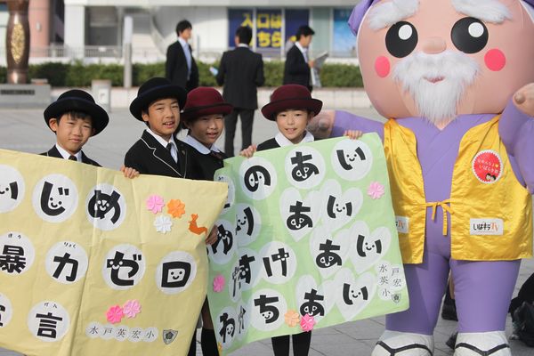 毎年11月は「いばらき教育月間」。英宏小では、本日、水戸駅前でおこなわれた「あいさつ・声かけ運動」、「さわやかマナーアップキャンペーン」に参加しました。