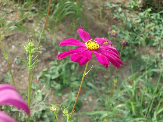 校内の片隅にひっそりとコスモスの花がかれんに咲いていました。