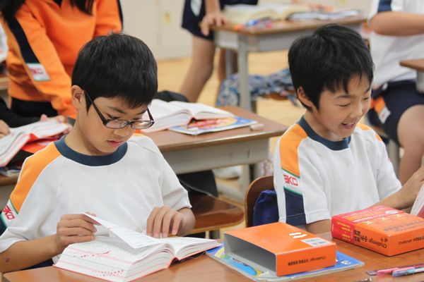 英宏小では3・4年生から英和辞典・和英辞典の使用がはじまります。今日の英語の授業は「辞書びきゲーム」。英和和英辞典を使って、様々な言葉を調べます。