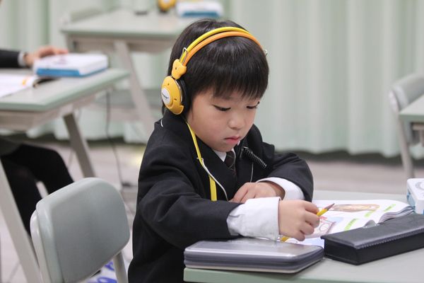 アフタースクールの英会話教室「レプトン教室」の一コマ。4月に入学し、8月からレプトン教室に参加した子どもたちも熱心に学習に励んでいます。