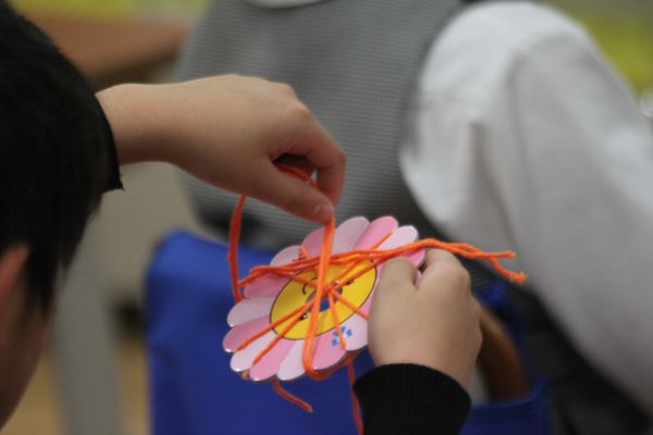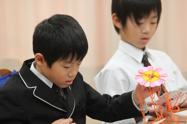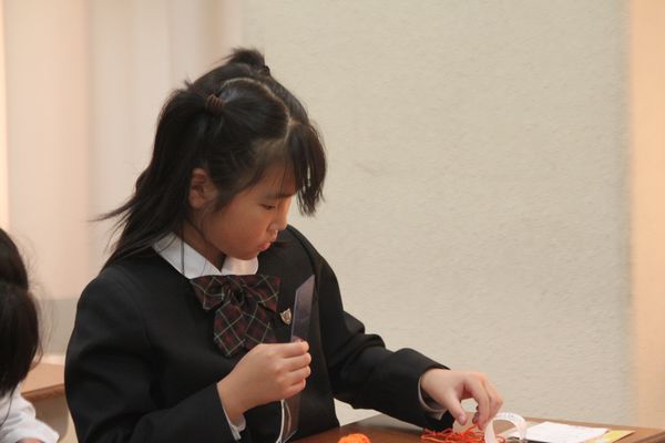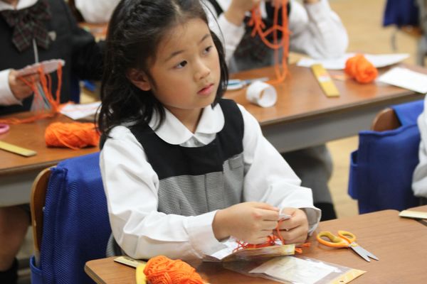 今日の2・3年生のアフタースクールプログラムは「手芸教室」。「くみひも作り」に挑戦です。