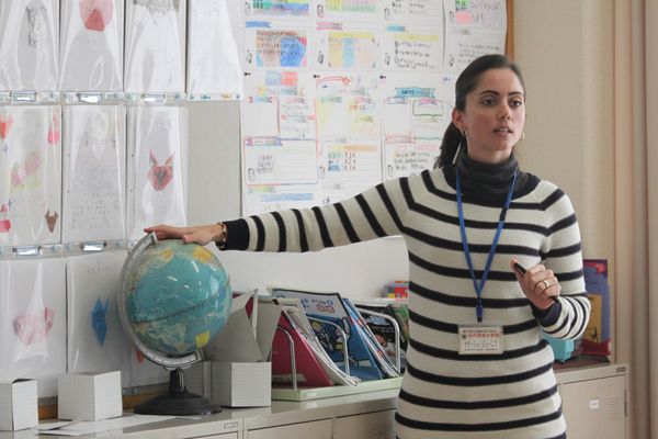 英宏小の国際理解教育は様々な国の文化や生活を学ぶことを大切にしています。ナターシャ先生は世界の様々なことについてお話してくれます。