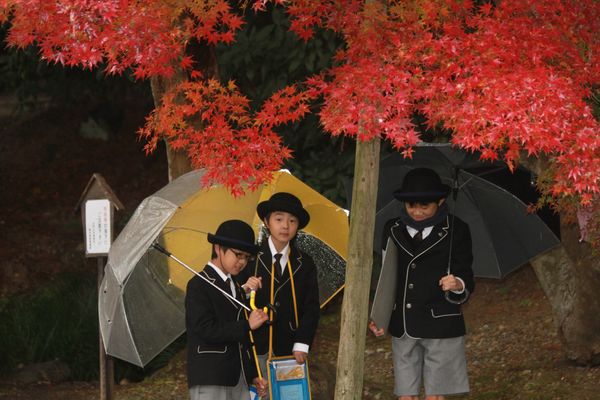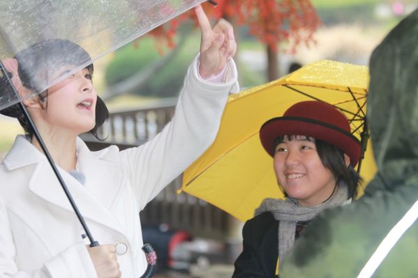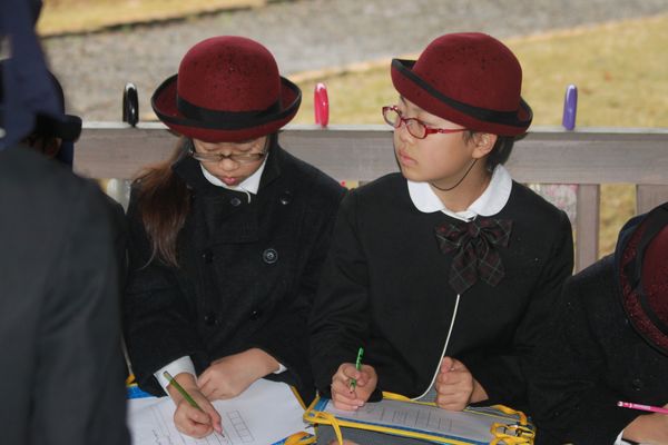 4年生のロケは偕楽園。美しい自然を「五感」を使って俳句にします。