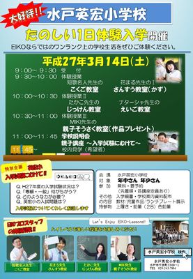 2015年1月から3月にかけての年中さん・年少さん対象のイベントのお知らせです。