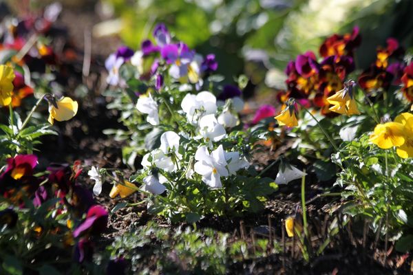 花壇を彩る冬の花々。保護者の有志の方々が整備をしてくださっています。いつもありがとうございます。