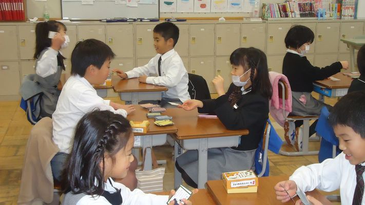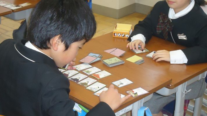 また、今日のカルタタイムは「四字熟語カルタ」と「百人一首」。約20種類の四字熟語を覚えるとともに、色とりどりの読み札を使って楽しいひとときを過ごしました。