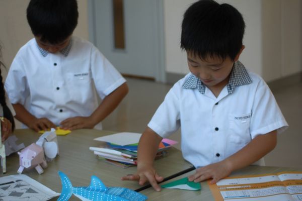 現地校のお友だちへのプレゼントとして,子どもたちに日本の伝統文化である「おりがみ」をつくってもらいました。