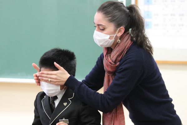 2年生は英語。ゲームを通して、英語のコミュニケーション能力を高めます。