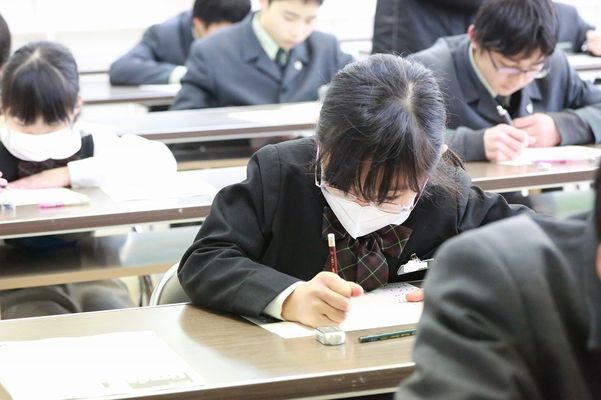 日頃の学習の成果を確認する英語検定。上級取得に向けて努力する子どもたちです。