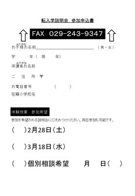 参加ご希望の方は電話・FAX・メール・説明会申し込みフォームなどでお申し込みください。※平成27年度入学 新1年生は定員に達しましたので,募集は終了しております。