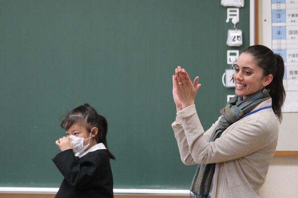 1年生の英語の授業は2人1組の会話練習。ナターシャ先生の指導のもとコミュニケーションを楽しみます。