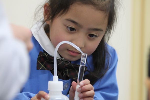 本校では低学年から科学に親しむ機会を設けるため、「実験教室」を開催しています。