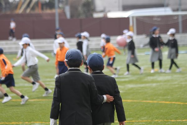 学年間の交流を通して、コミュニケーション力を高める子どもたち。助け合いの場面もあちこちで見られます。