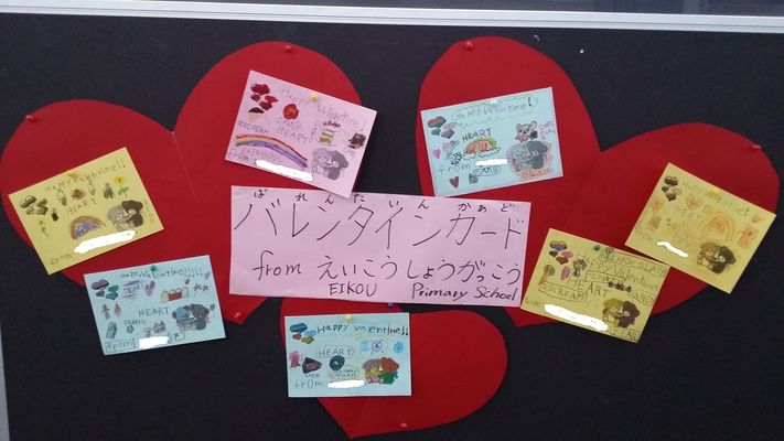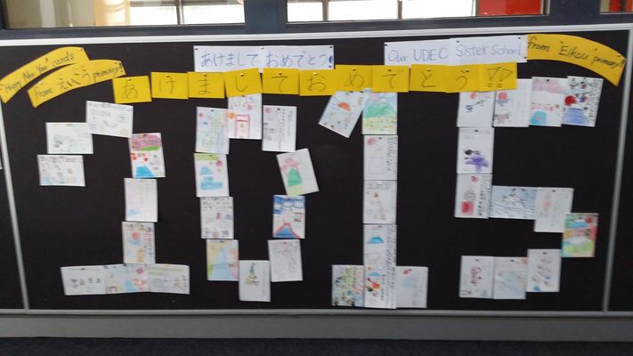 今朝、オーストラリアの小学校から届いた写真です。これまで、現地校に送った「年賀状」や「バレンタインカード」は大切に現地校で紹介されています。