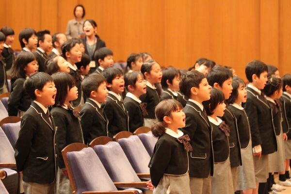 1年間の思いを込めての校歌斉唱。元気な歌声が響きわたります。