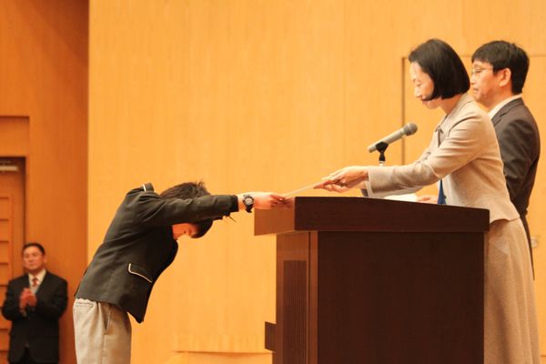 各検定やコンクールの入賞者の表彰。校長先生から代表児童に伝達されます。