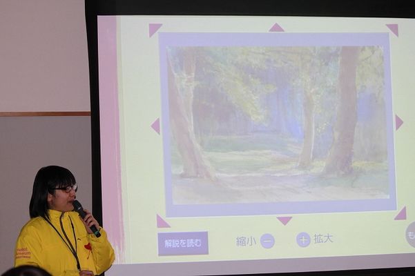 絵を拡大して、描かれている鳥や魚などをたのしく見ていました。