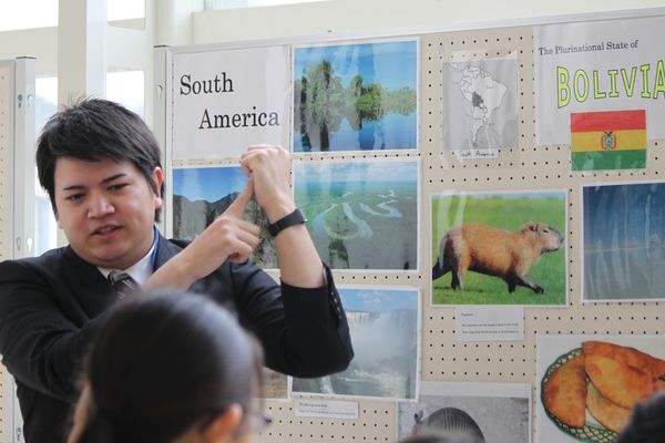 今年度から英宏小のALTにナターシャ先生の他に新しい先生が加わりました。南米ボリビア出身のKenji先生です。Kenji先生は英語・スペイン語・ポルトガル語・日本語を話すマルチリンガルです。