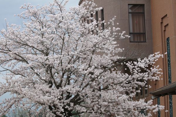 学校の桜の花は満開。新1年生の入学を祝福するように咲き誇っています。