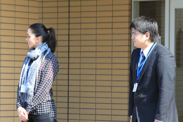 今朝のイングリッシュミーティングの1コマ。ナターシャ先生とKenji先生のスピーチや英語のラジオ体操を楽しみます。