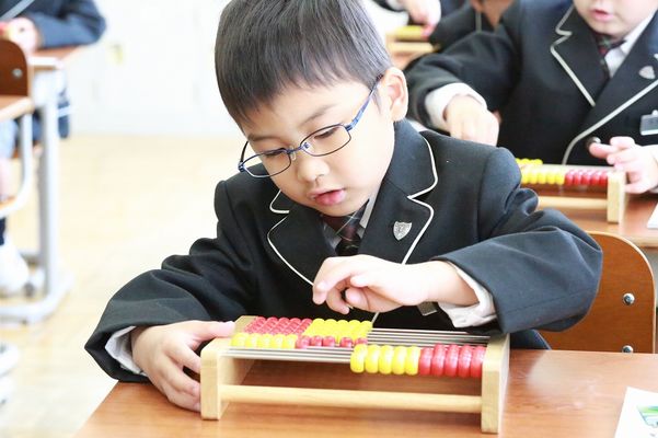 1年生です。入学から1週間が過ぎました。小学校生活にもだいぶ慣れてきて,落ち着いた態度でEIKOの学びを楽しんでいます。MIKI先生の算数の授業で,早くも百玉そろばんで100までの数を唱える練習をしています。