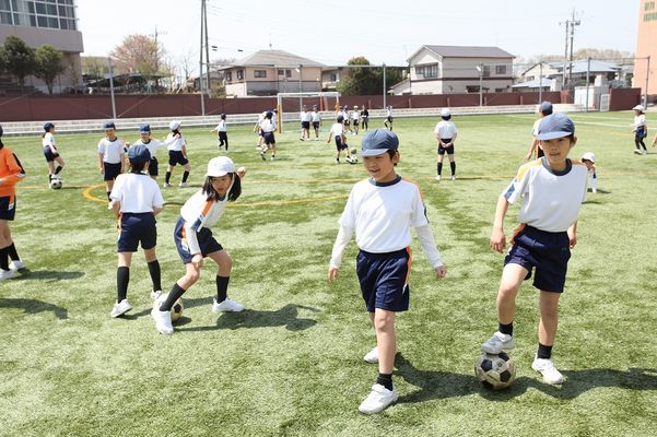 3,4年生の体育の様子です。ふかふか人工芝の上で,鬼ごっこやサッカーを楽しみました。