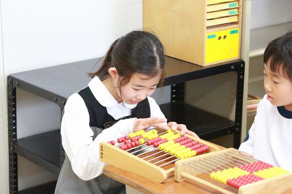 1年生は,1対1対応の発展から,早くも100までの数唱をしています。つまづいたときは,5年生が優しく教えてくれました。