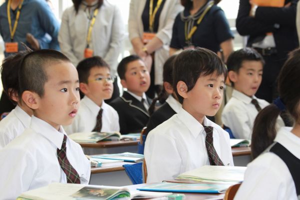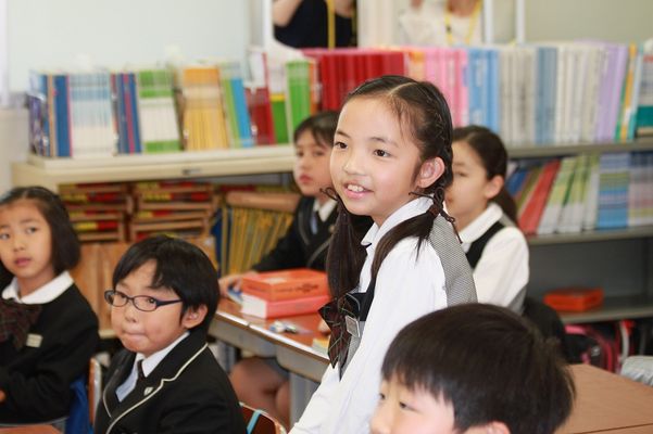 英宏小学校では1年生から英会話によるコミュニケーション能力をぐんぐん高めています。