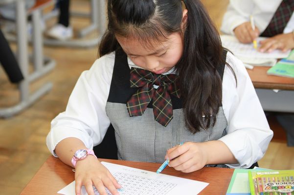 入学して1ヶ月の1年生ですが,とても落ち着いた態度でEIKOの学びを進めることができるようになりました。