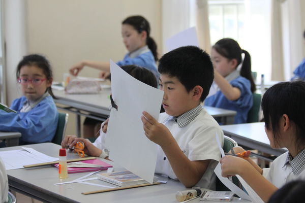 子どもたちは「色」や「形」などの英語表現を自然に身に付けていきます。