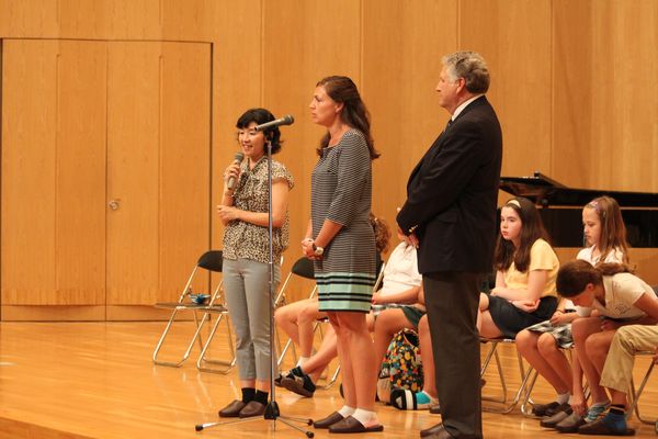 ブライトスクールの120年の歴史の中で「日本旅行」ははじめてとのこと。モーガン校長からは水戸英宏小学校とブライトスクールの交流が日米の絆を深めるきっかけになればというお話がありました。