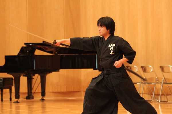 歓迎レセプションでは小・中学校の児童・生徒による歓迎スピーチのほか、合唱のプレゼント。本校教員による「居合道」の演舞もありました。