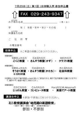「第1回 たのしい1日体験入学」を開催します。