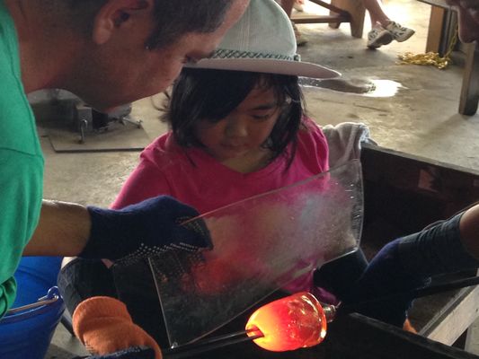 ガラス作り体験は実際に吹きガラスを体験します。