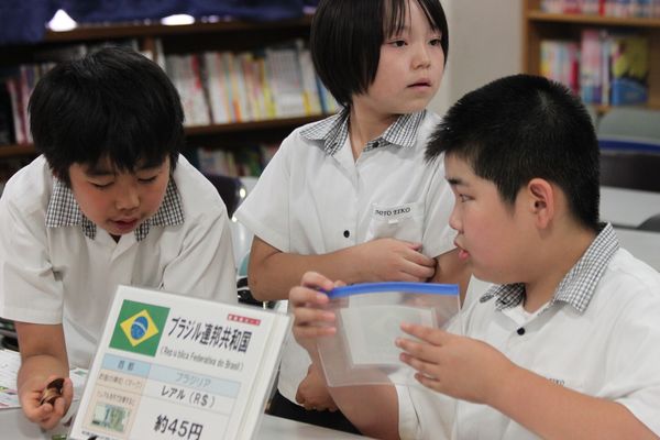 2・3年生グループは世界のさまざまな国の「通貨」を通して、日本の通貨「円」の価値を学びます。