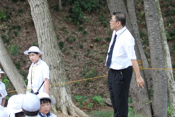 サマースクール3日目のスペシャルプログラムは短歌名人先生の「創作教室」。英宏の泉を散策し、短歌・俳句の創作に取り組みました。