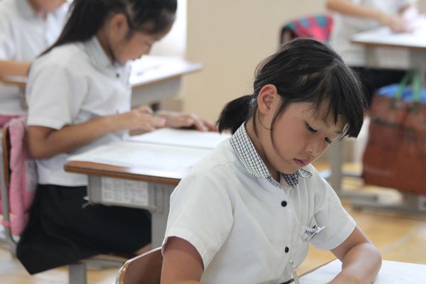 本日は全学年児童を対象に「第1回学習診断テスト」(育伸社)を実施しました。1年生にとっては初めての全国模試。緊張しながらも、集中して問題に取り組む子どもたちです。